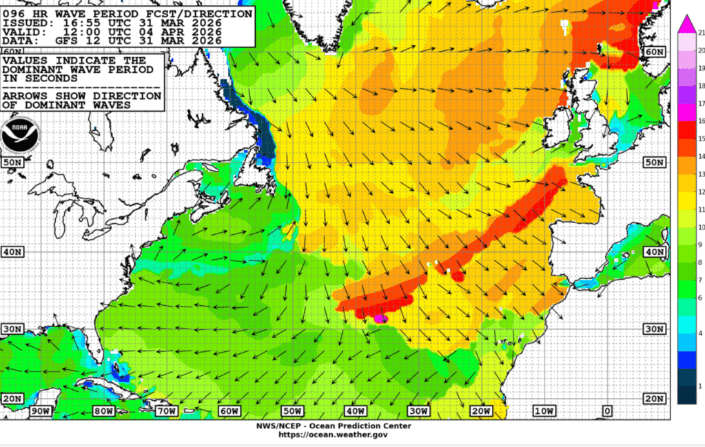 Second up Wind Guru, just to see how they see the same base data from NOAA & other weather sites, yep seems to be in line. Plenty of swell and wind direction similar.